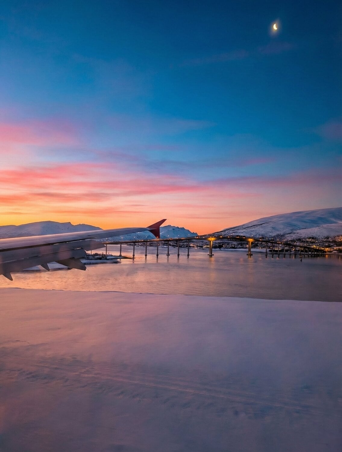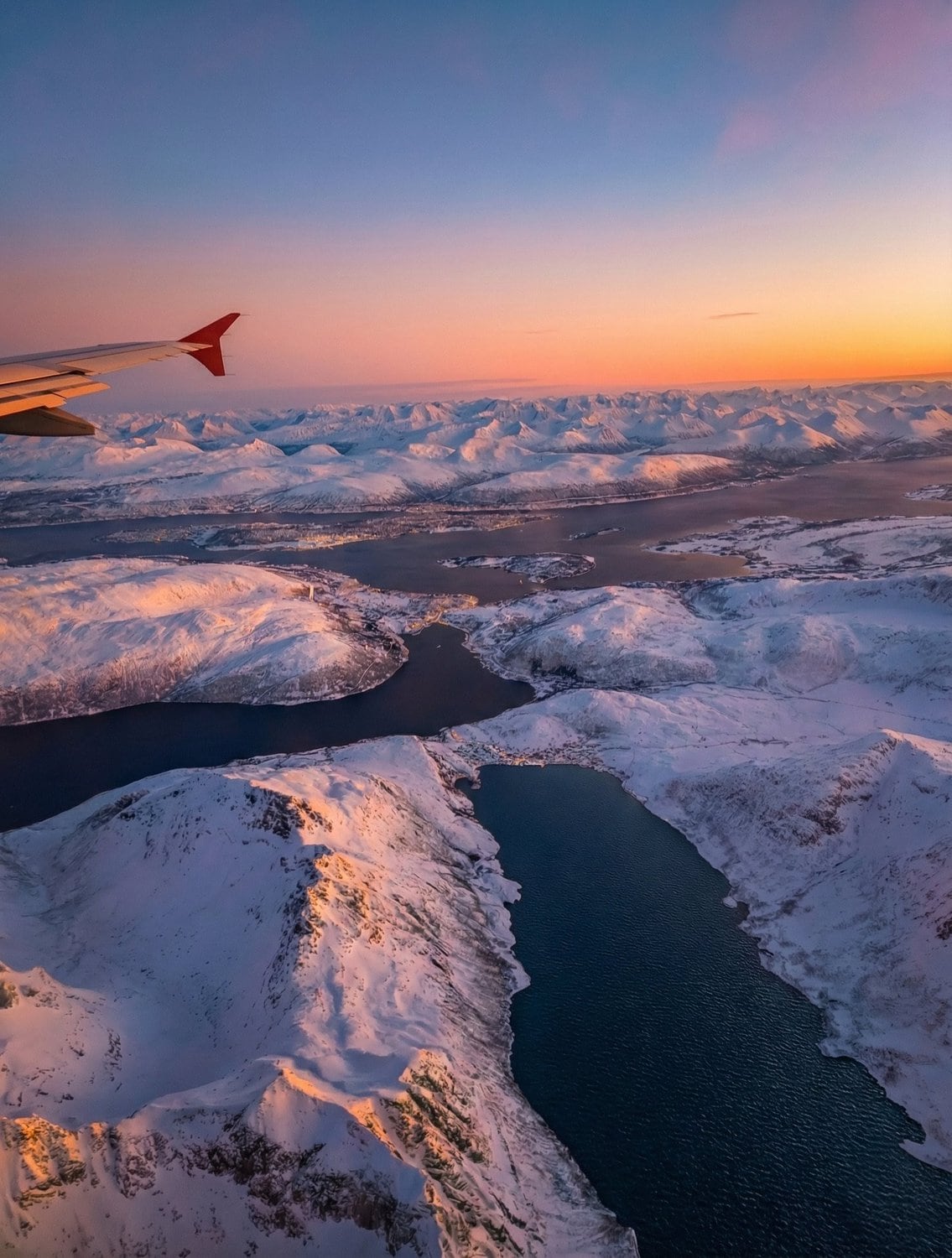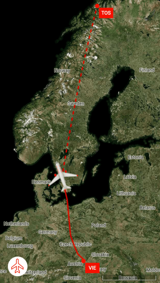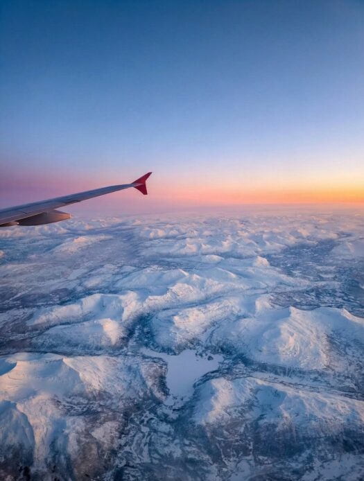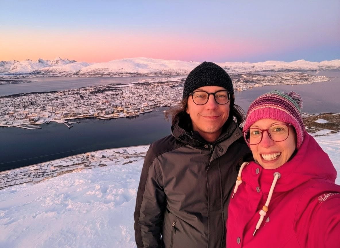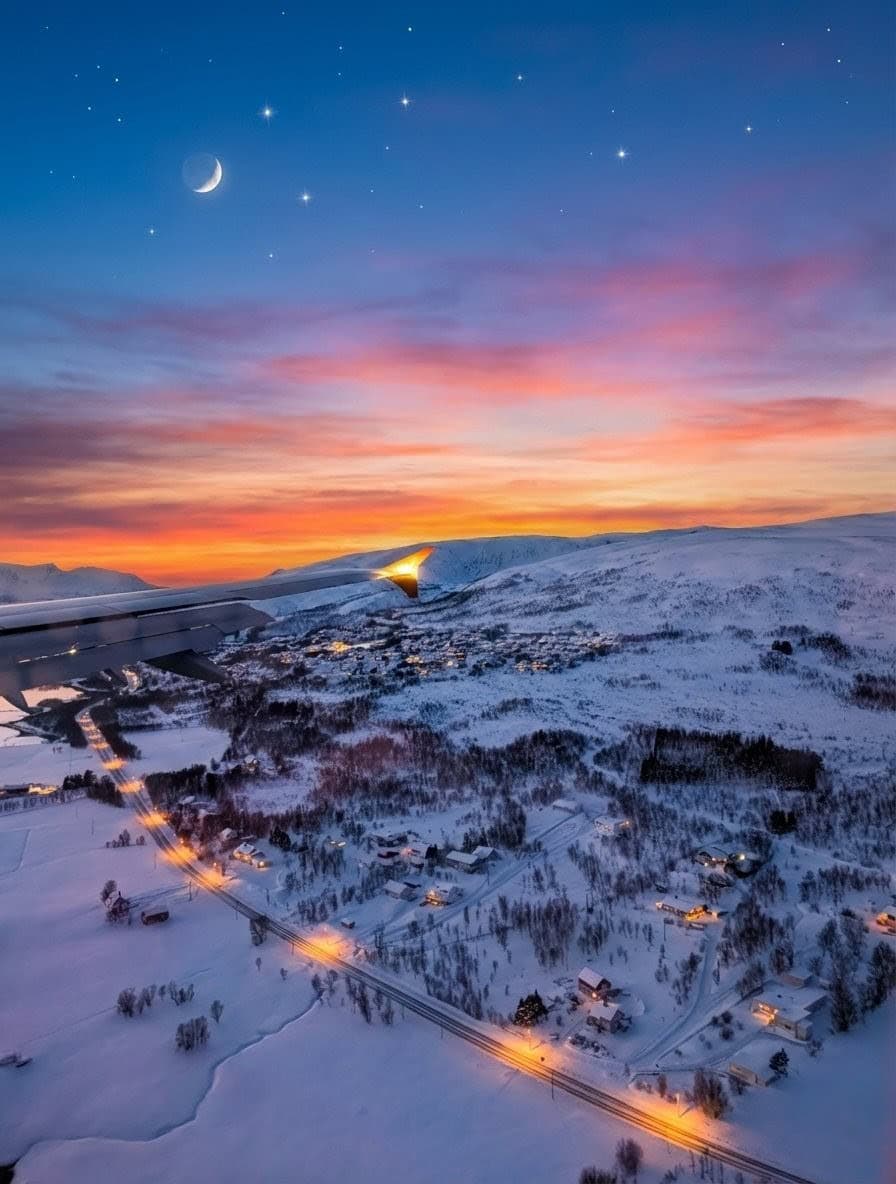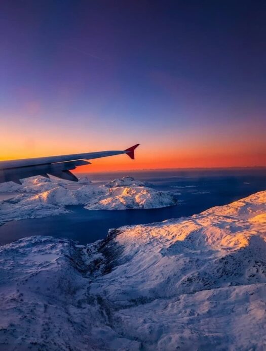 Das neue Jahr startete direkt mit einer Reise. Diesmal ab Prag – nachdem wir unsere Samtpfoten bei meinen Eltern in Sicherheit wussten und unsere liebe Nachbarin sich um alles Weitere zu Hause kümmerte – ging es via Wien direkt hinein ins arktische Abenteuer. Schon der Anflug auf Tromsø im glühenden Sonnenuntergang war schlichtweg atemberaubend und ein erster Vorgeschmack auf die Magie des Nordens. ✨