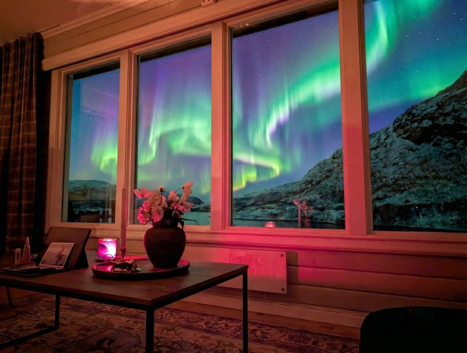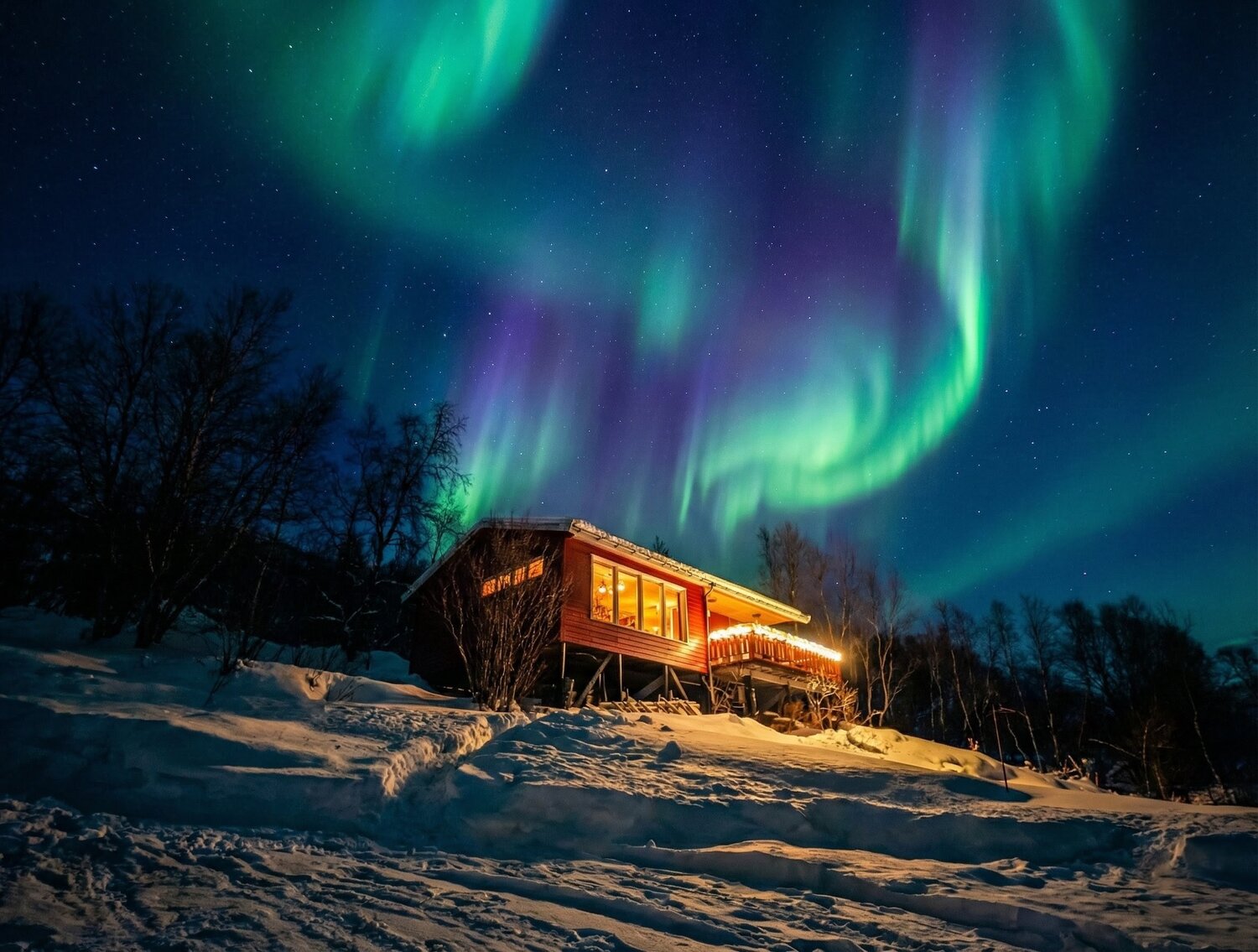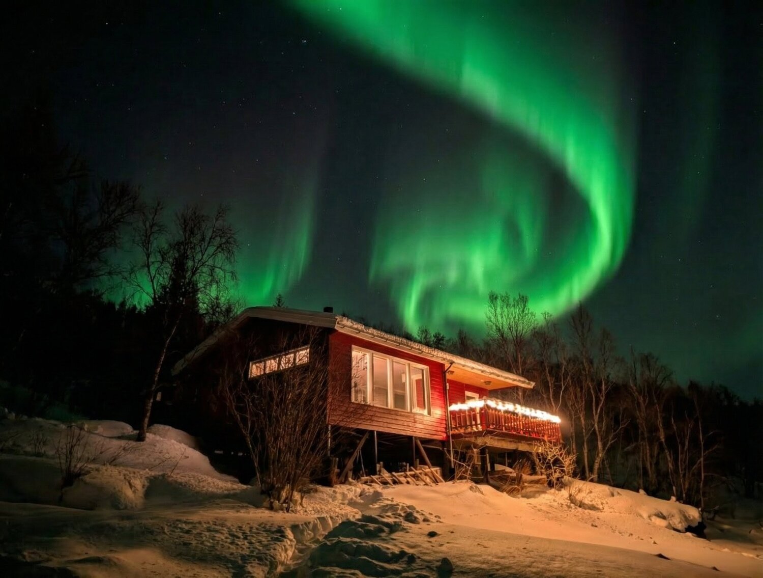 Den Nachmittag verbrachten wir gemütlich mit leckerer Schokotorte in unserer Hütte. Der krönende Abschluss folgte am Abend: Wir konnten einfach vom Sofa aus beobachten, wie die Polarlichter direkt über uns tanzten. Ein Lichtspektakel über unseren Köpfen, bei dem die Welt für einen Augenblick den Atem anzuhalten scheint. ✨