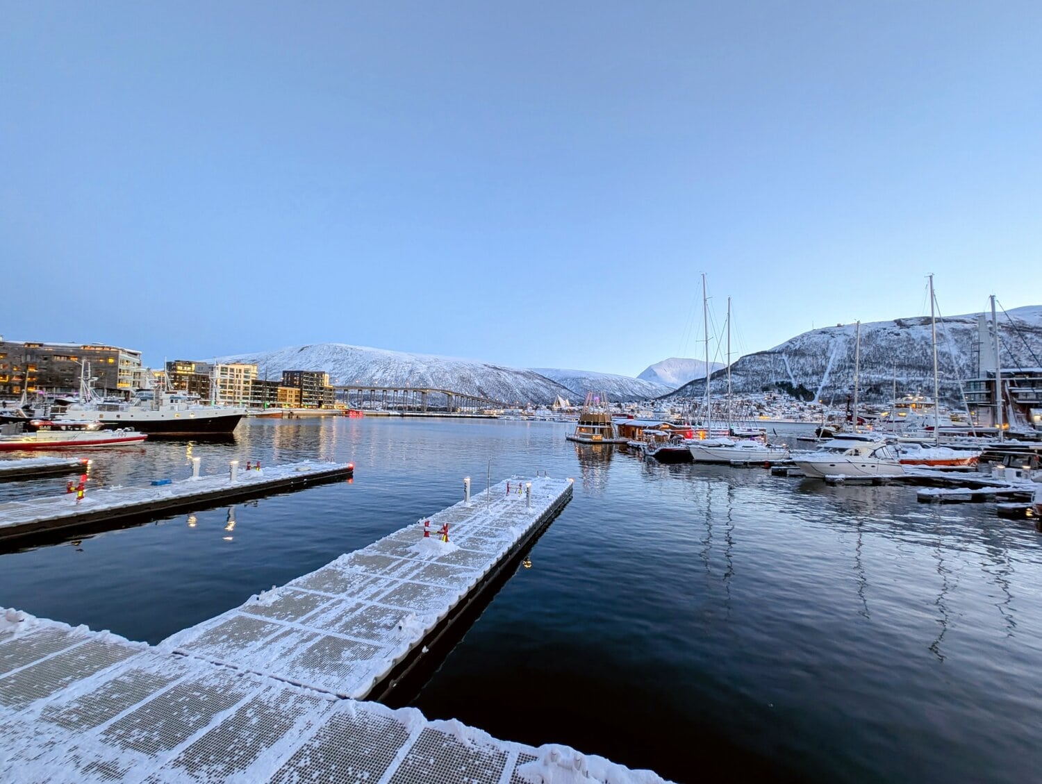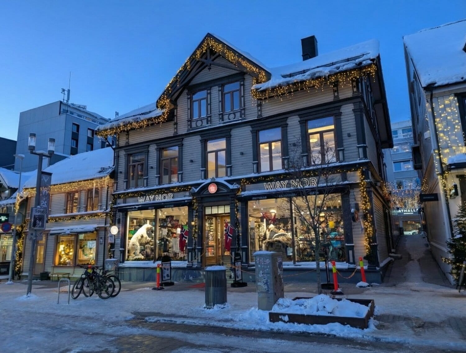 Während unserer ersten Erkundungstour zeigte sich sogleich die ungestüme Seite des Nordens. Ein Schneesturm wirbelte alles durcheinander, was uns aber nicht davon abhielt, einen Aussichtspunkt zu besuchen. Am Nachmittag bummelten wir gemütlich durch die Gassen von Tromsø und entdeckten dabei wundervolle Fotoplätze. 📸