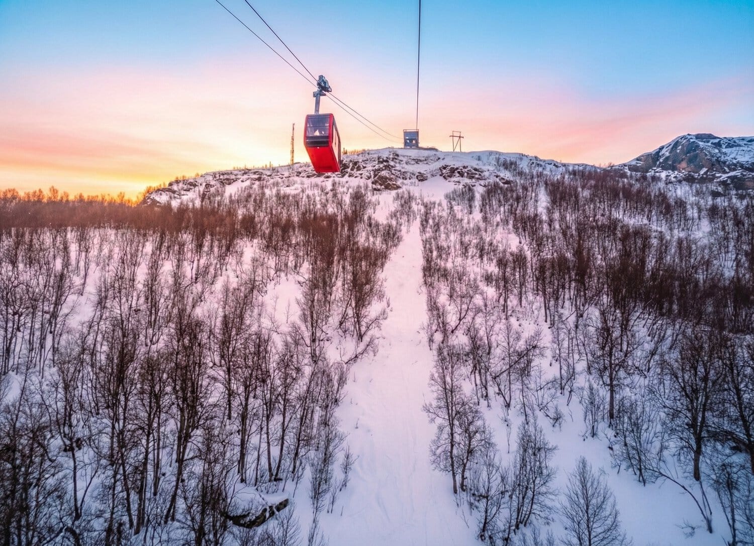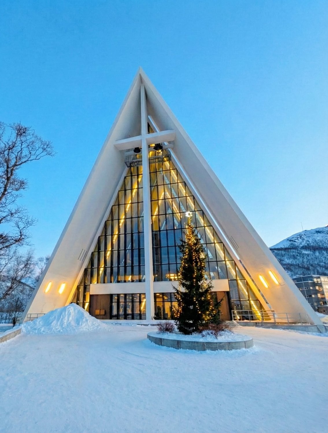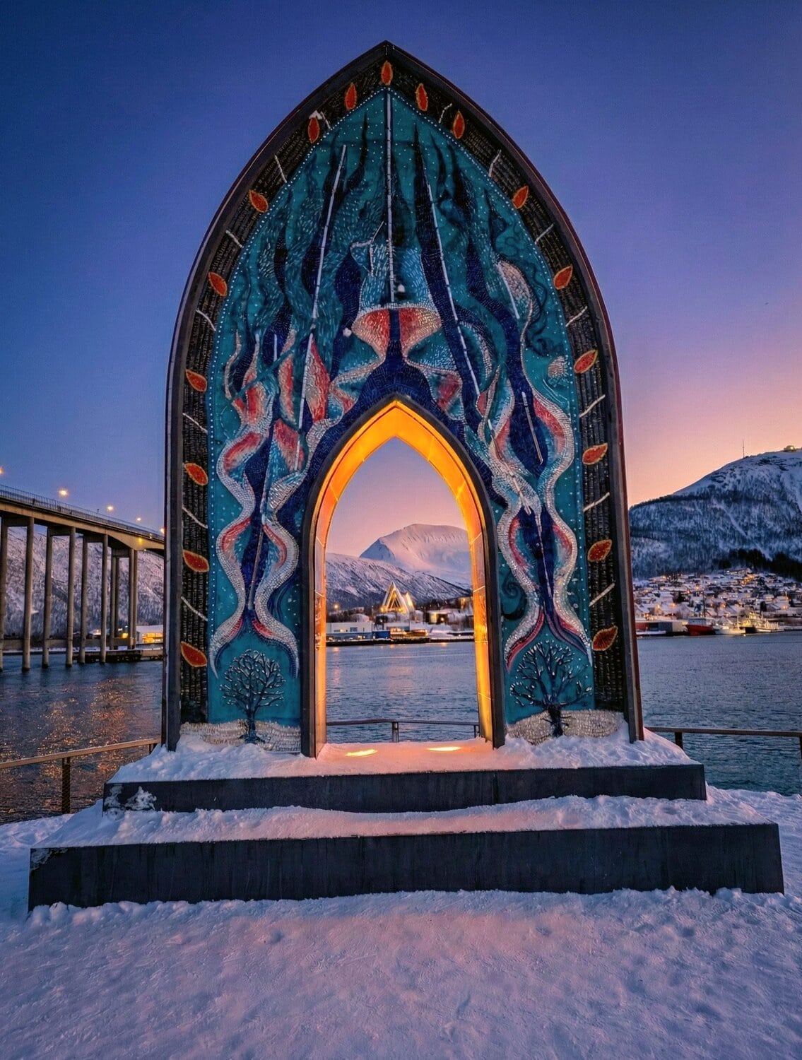 Während die Geburtstagstorte zu Hause in der Hütte langsam auftaute, machten wir uns auf den Weg nach Tromsø. Wir besuchten die berühmte Eismeerkathedrale und fuhren mit der Gondel Fjellheisen auf den Storsteinen. Von dort oben hat man einen phänomenalen Blick über Tromsø und die umliegende Fjordlandschaft. Die Gondel fährt bis Mitternacht, da man von hier aus natürlich auch perfekt die Polarlichter bestaunen kann (oder im Sommer die Mitternachtssonne). 🚠❄️🏔️