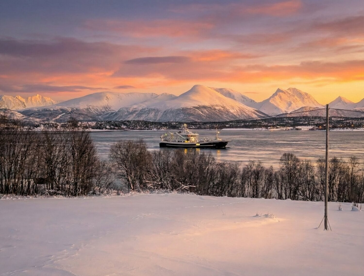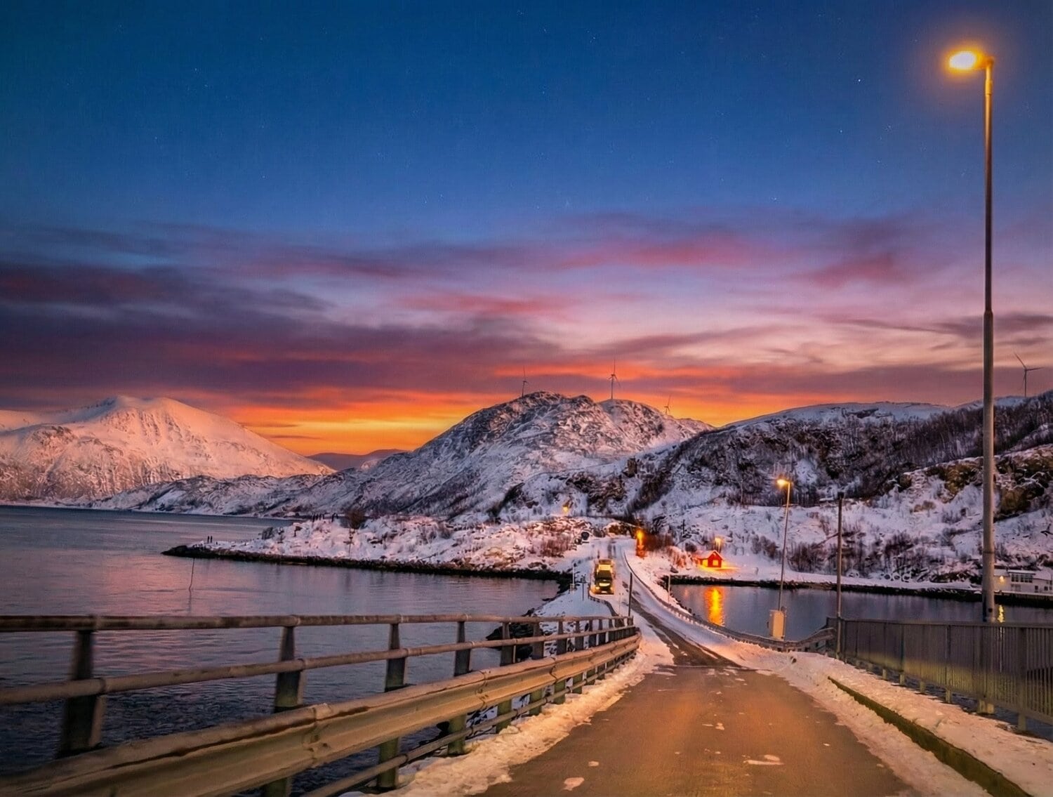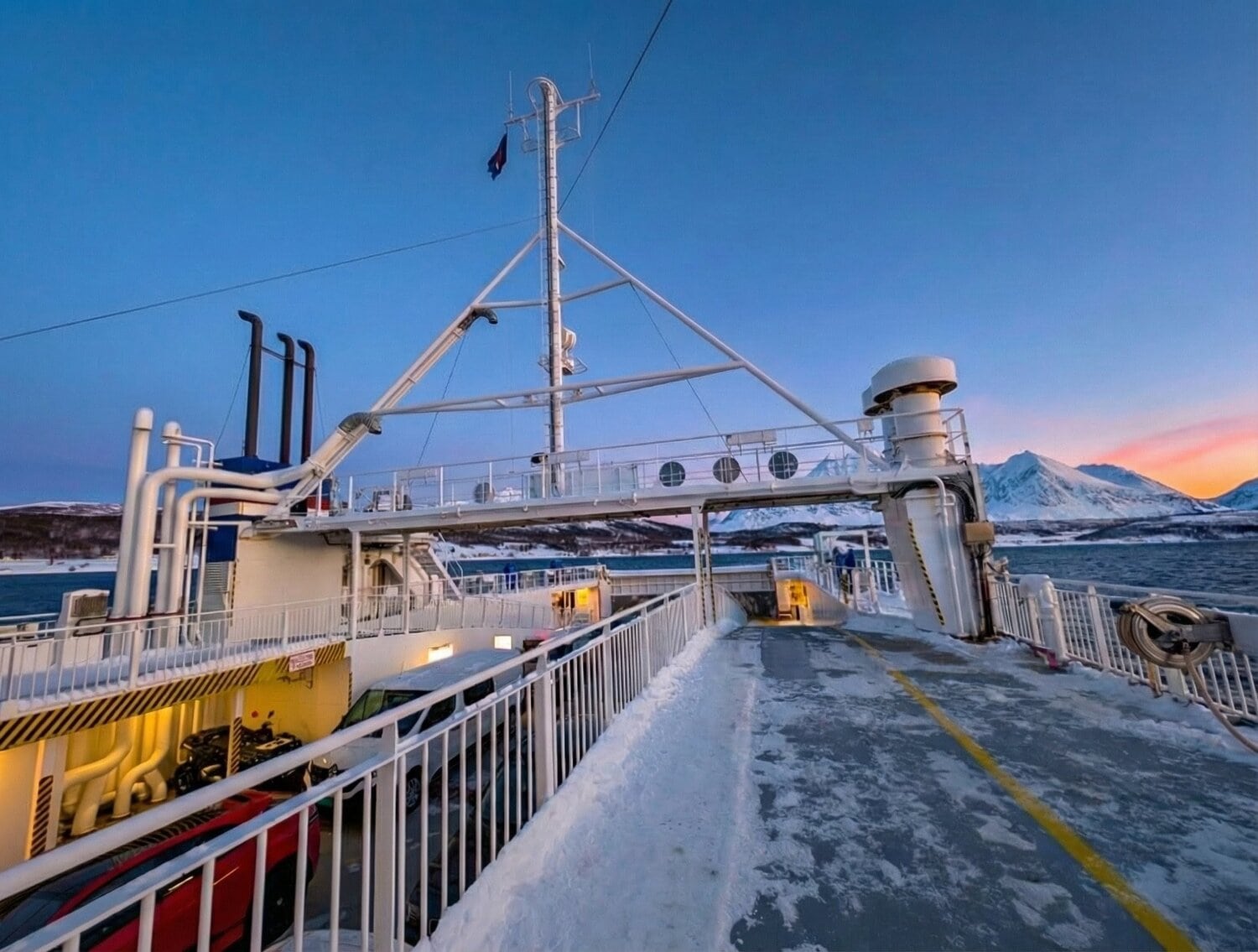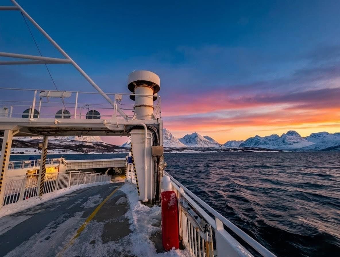 Von Lyngen aus brachte uns schließlich eine Fähre zurück aufs Festland und wir steuerten wieder Richtung Tromsø. Nach diesem frostigen, aber herzlichen Abenteuer freuten wir uns umso mehr auf die wohlige Wärme unserer geliebten Blockhütte. ⛴️🏠