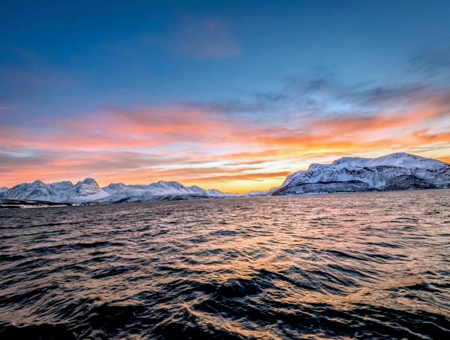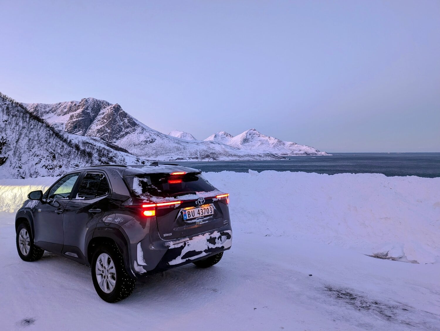 Viele Haltebuchten entlang der Küstenstraße luden zum Verweilen ein und wir hielten immer wieder an, denn an dieser winterlichen Landschaft mit den majestätischen Bergen und dem tiefblauen Meer kann man sich einfach nicht satt sehen. Zum Abschluss liefen wir noch zu einem Aussichtspunkt hinauf. Dort oben angekommen, wurde es ganz still: Unser Blick schweifte in die unendliche, arktische Weite, bis zum Horizont, wo Himmel und Meer eins zu werden schienen. 🏔️🌊