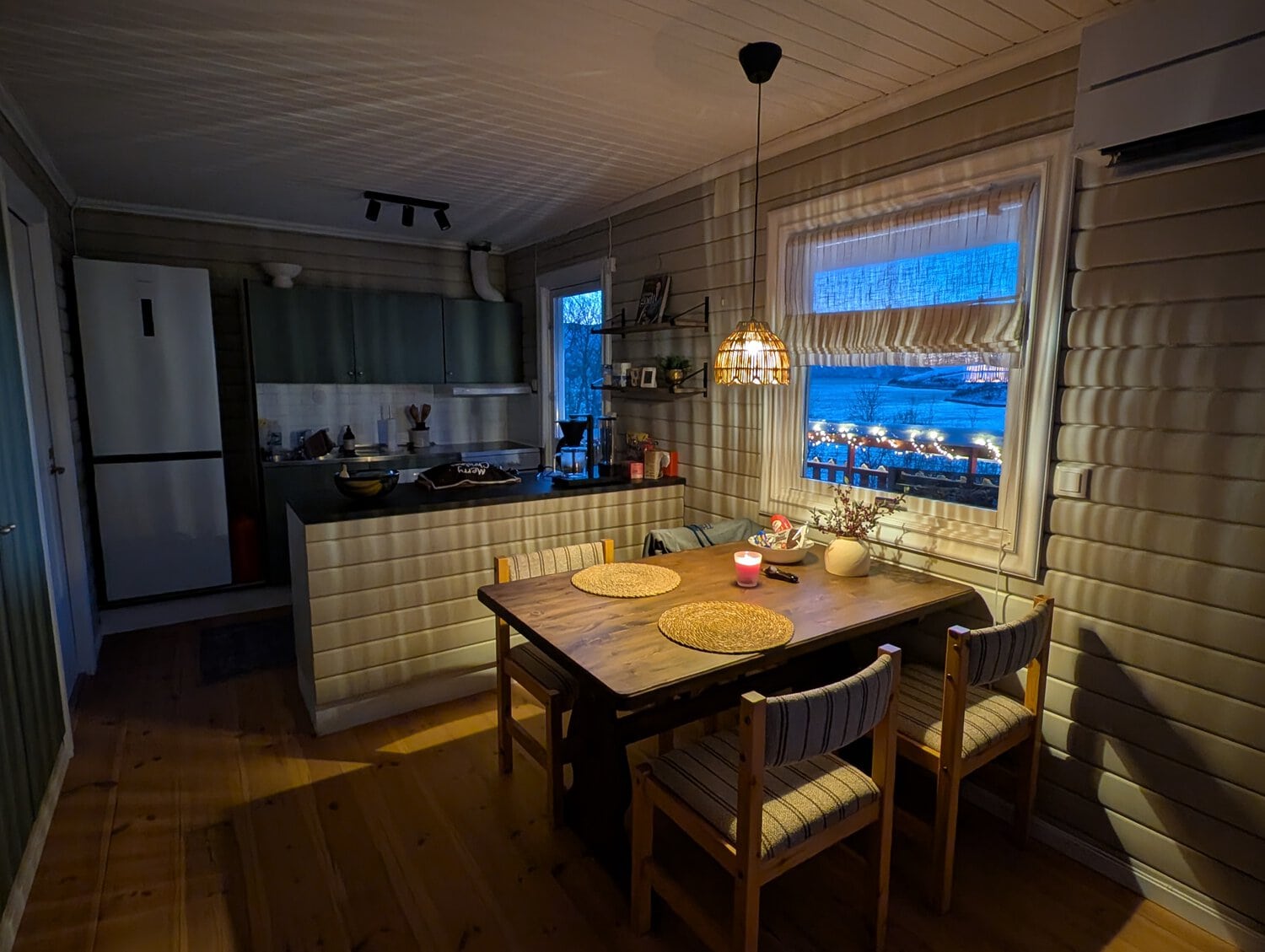 Nach der Mietwagenübernahme hieß es erst einmal: Vorräte aufstocken! Da zwei große Supermärkte direkt am Wegesrand liegen, war das schnell erledigt. Danach fuhren wir zu unserer Blockhütte: eine echte Wohlfühloase etwas außerhalb der Stadt. Es war genau das, was wir gesucht hatten – ein traumhaftes Zuhause fernab vom Trubel inmitten der Natur, das uns mit seiner Gemütlichkeit sofort verzauberte. ❄️